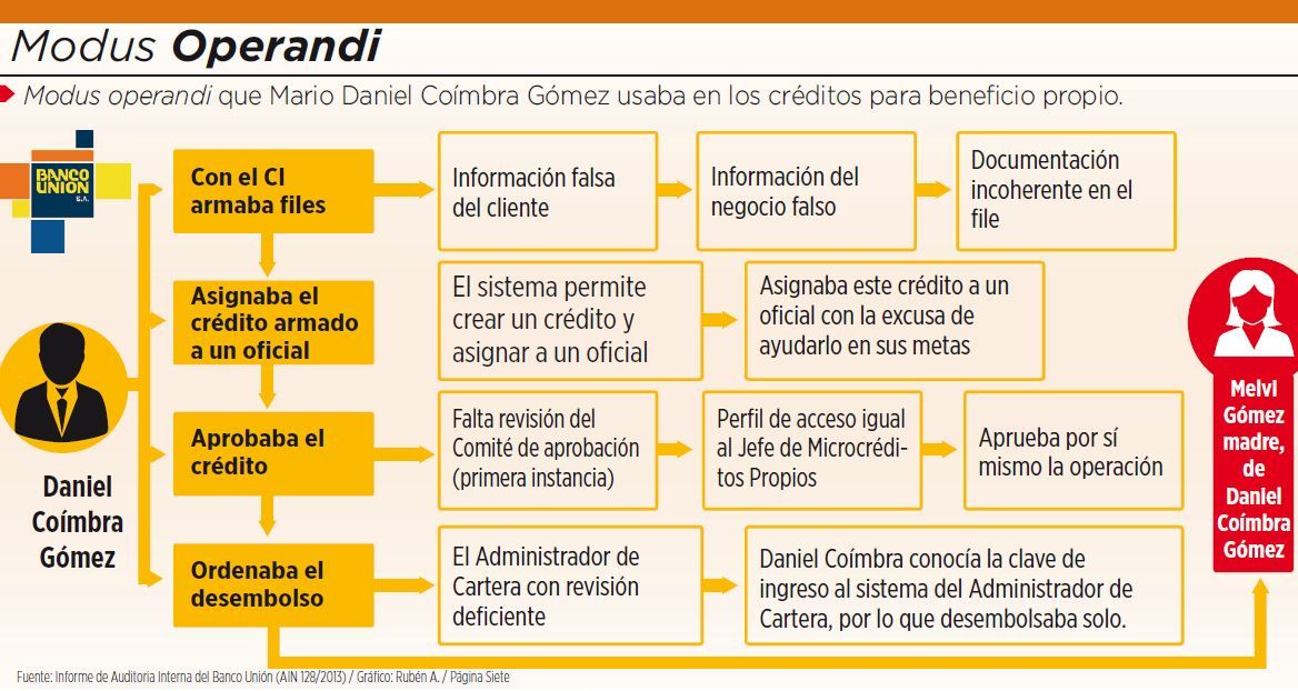 Se trata del exoficial de microcréditos Mario Daniel Coímbra Gómez, quien obtenía documentos de identidad de familiares y amigos y gestionaba los créditos con la excusa de hacer un favor personal, para lo que fraguaba o inventaba documentación de respaldo de negocios.